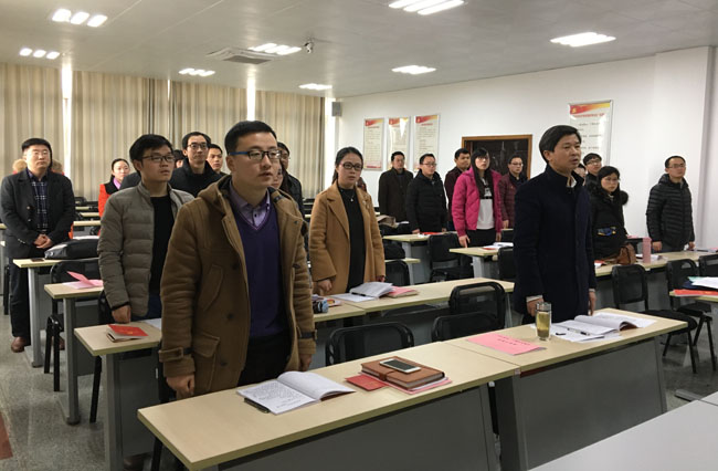 活動中,支部黨員按照要求完成“繳納黨費(fèi)、奏唱國歌、重溫誓詞、誦讀黨章、學(xué)習(xí)黨規(guī)黨情”五個規(guī)定動作之后,集中學(xué)習(xí)了《1月5日習(xí)近平總書記在學(xué)習(xí)貫徹十九大精神研討班開班式上的重要講話精神》。隨后,各黨員結(jié)合自身工作實(shí)際,談了學(xué)習(xí)體會,并表示要從思想和行動上,堅決維護(hù)以習(xí)近平同志為核心的黨中央權(quán)威和集中統(tǒng)一領(lǐng)導(dǎo),并在日常教育教學(xué)工作之中貫徹落實(shí)十九大精神。