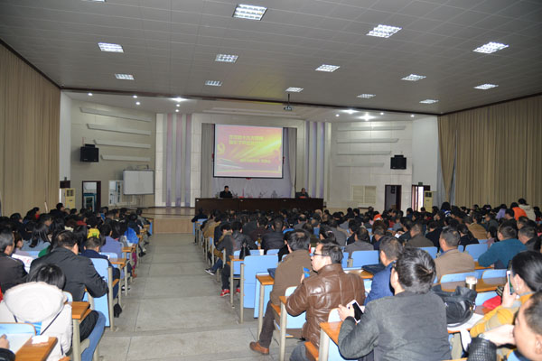 11月25日上午,市教育局“學(xué)習(xí)貫徹黨的十九大精神宣講團(tuán)”來我校開講,市教育局黨組書記、局長鄭滌塵作了題為《在黨的十九大精神的指引下開展新征程》的報告。市教育局機(jī)關(guān),黃岡中學(xué),黃州中學(xué),中職集團(tuán),市電大等單位和學(xué)校教職工近500人參加會議。會議由市教育局黨組成員、機(jī)關(guān)黨委書記瞿建新主持。