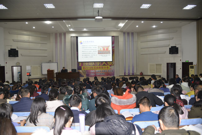 我校全體干部教職工,市直公民辦學校領導班子成員,支部書記、支部委員、黨小組長,思政課教師、黨員教職工代表500余人參加會議。市教育局黨委委員、副局長丁意輝主持會議。