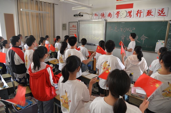 上午10時,慶祝大會正式開始。全校師生在會議室和各班教室收看直播,認真聆聽了習近平總書記的講話,觀看了精彩的閱兵式。大家熱血沸騰,深深感到作為中國人的驕傲與自豪。大家表示,要立足本職、恪盡職守,認真學習,努力工作,銳意進取,堅持立德樹人,辦人民滿意的教育,用實際行動為國家的建設(shè)和發(fā)展做出更大的貢獻。