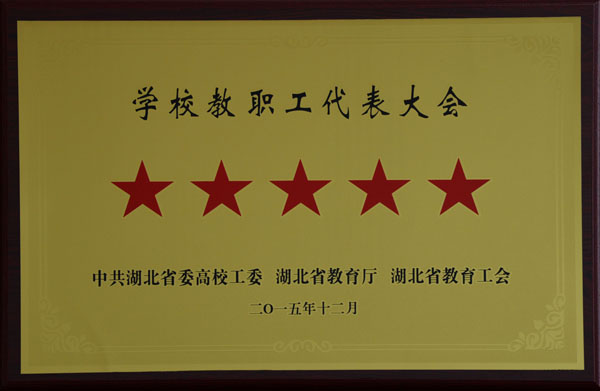 新年伊始,喜訊臨門。我校被湖北省委高校工委、湖北省教育廳、湖北省教育工會聯(lián)合授予“五星級教代會”學(xué)校,近日收到上級贈予的“五星級教代會”的榮譽(yù)牌扁。