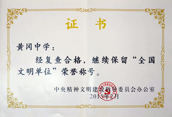 近日,中央精神文明建設(shè)指導(dǎo)委員會(huì)辦公室發(fā)布《關(guān)于全國文明城市提名城市(區(qū))和繼續(xù)保留的全國文明村鎮(zhèn)、文明單位名單的通報(bào)》,湖北省黃岡中學(xué)順利通過湖北省、黃岡市兩級(jí)文明委復(fù)查和中央文明辦審核抽查,繼續(xù)保留“全國文明單位”稱號(hào)。