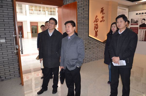 何蘭田校長陪同柯春暉一行參觀校史陳列室