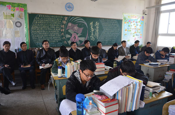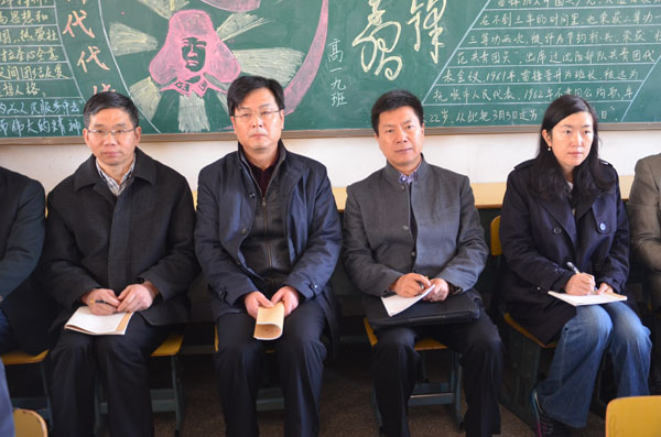 柯春暉一行在市教育局局長聞武斌的陪同下,參觀了我校校園和校史陳列室,深入到高一年級(jí),認(rèn)真聽了化學(xué)、語文、英語共三節(jié)課,對(duì)中學(xué)課堂教學(xué)有了近距離的了解,對(duì)黃岡中學(xué)的課堂教學(xué)有了更真實(shí)的認(rèn)識(shí),并對(duì)學(xué)校課堂教學(xué)面貌給予了極高的評(píng)價(jià)??麓簳熞恍羞€與學(xué)校教師代表進(jìn)行了座談,就課程改革、高考改革、國家教育改革和發(fā)展方向等問題,傾聽基層教師的意見和建議。在座談會(huì)上,市教育局聞武斌同志匯報(bào)了全市教育發(fā)展和改革情況,黃岡中學(xué)何蘭田同志匯報(bào)了當(dāng)前學(xué)校的教育教學(xué)改革思路和舉措。