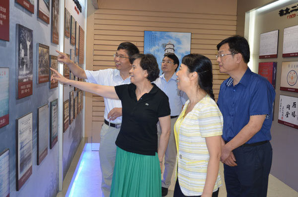 何蘭田校長陪同許琳一行參觀校史陳列室何蘭田校長向許琳一行介紹學校的基本情況