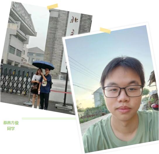 方俊同學(xué)滿(mǎn)懷喜悅簽收,并和媽媽一起開(kāi)啟了這封來(lái)自于北大的高考錄取通知書(shū),看到自己的名字和學(xué)號(hào)出現(xiàn)在錄取通知書(shū)上,方俊開(kāi)心又激動(dòng),“北大一直是我夢(mèng)寐以求的學(xué)校,十二年的學(xué)習(xí)得到了比較好的回報(bào)!”一路走來(lái),他對(duì)師長(zhǎng)和家人懷有感恩之心:“非常高興有機(jī)會(huì)進(jìn)入北大繼續(xù)學(xué)習(xí),希望未來(lái)可以繼續(xù)追逐自己的夢(mèng)想,為國(guó)家盡一份綿薄之力。” 方俊說(shuō)道。