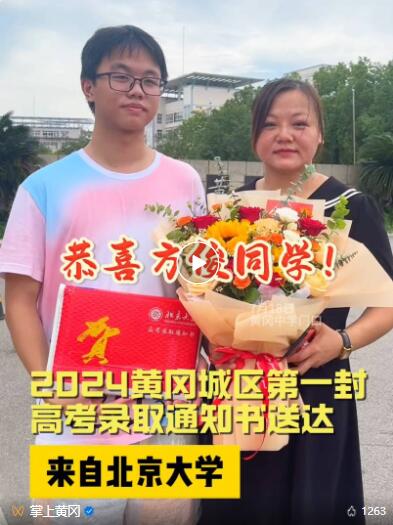 “方俊同學(xué),恭喜你!你的北大錄取通知書(shū)到了,請(qǐng)簽收。”7月18日,中國(guó)郵政投遞員帶著2024年黃岡首封北大錄取通知書(shū)上門(mén)投遞,將錄取通知書(shū)鄭重地遞交到了“幸運(yùn)兒”手中。