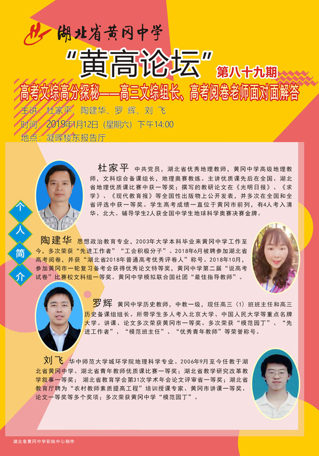 黃高論壇第89期:高考文綜高分探秘——高考文綜組長、高考閱卷老師面對面解答