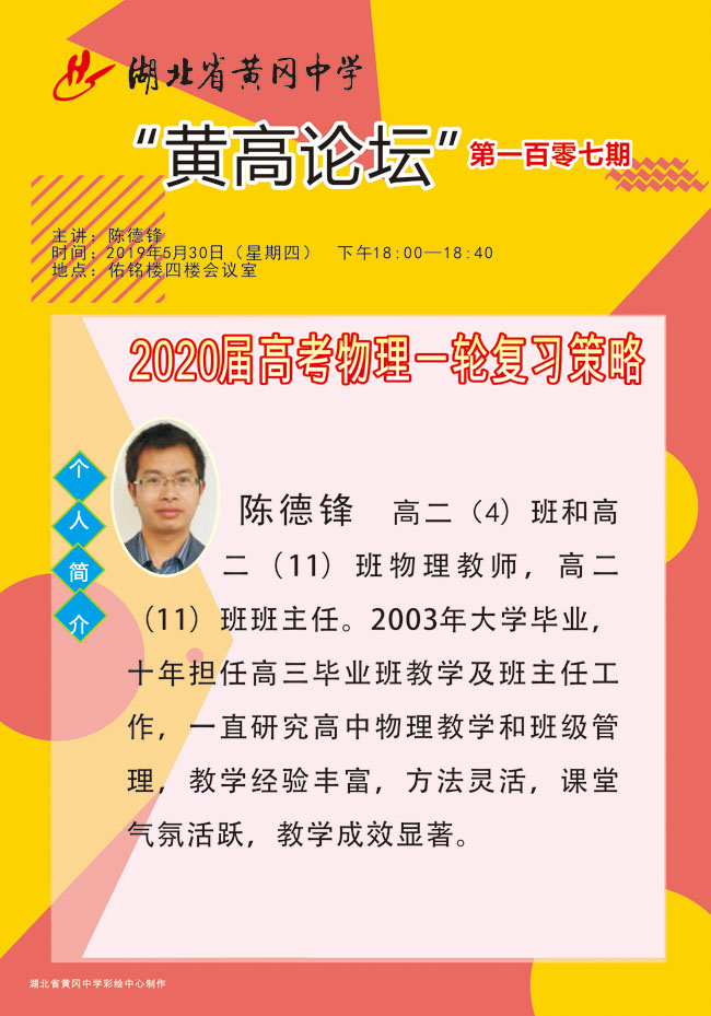 黃高論壇第107期:2020屆高考物理一輪復(fù)習(xí)策略