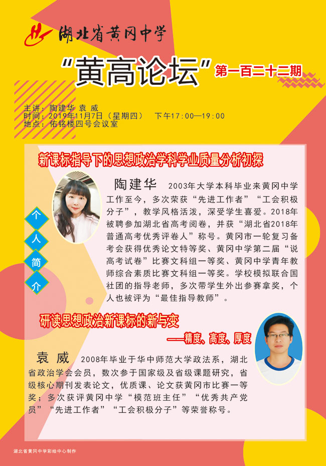 黃高論壇第122期:新課標指導下的思想政治學科學業(yè)質量分析初探+研讀思想政治新課標的新與變——精度、高度、厚度