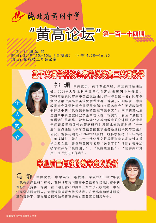 黃高論壇第114期:基于英語(yǔ)學(xué)科核心素養(yǎng)淺談高三英語(yǔ)教學(xué)+學(xué)業(yè)質(zhì)量標(biāo)準(zhǔn)的教學(xué)意義淺析