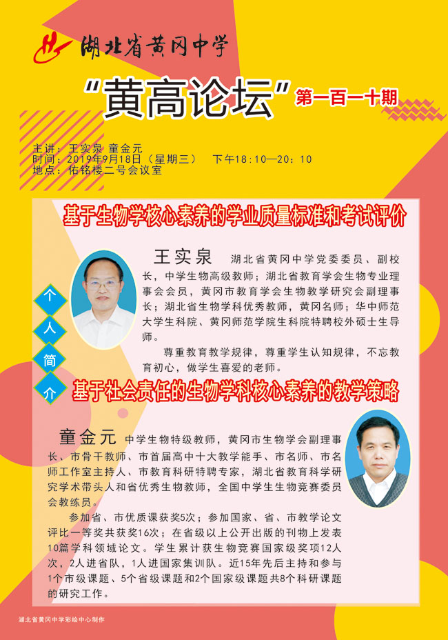 黃高論壇第110期:基于生物學(xué)核心素養(yǎng)的學(xué)業(yè)質(zhì)量標(biāo)準(zhǔn)和考試評價+基于社會責(zé)任的生物學(xué)科核心素養(yǎng)的教學(xué)策略