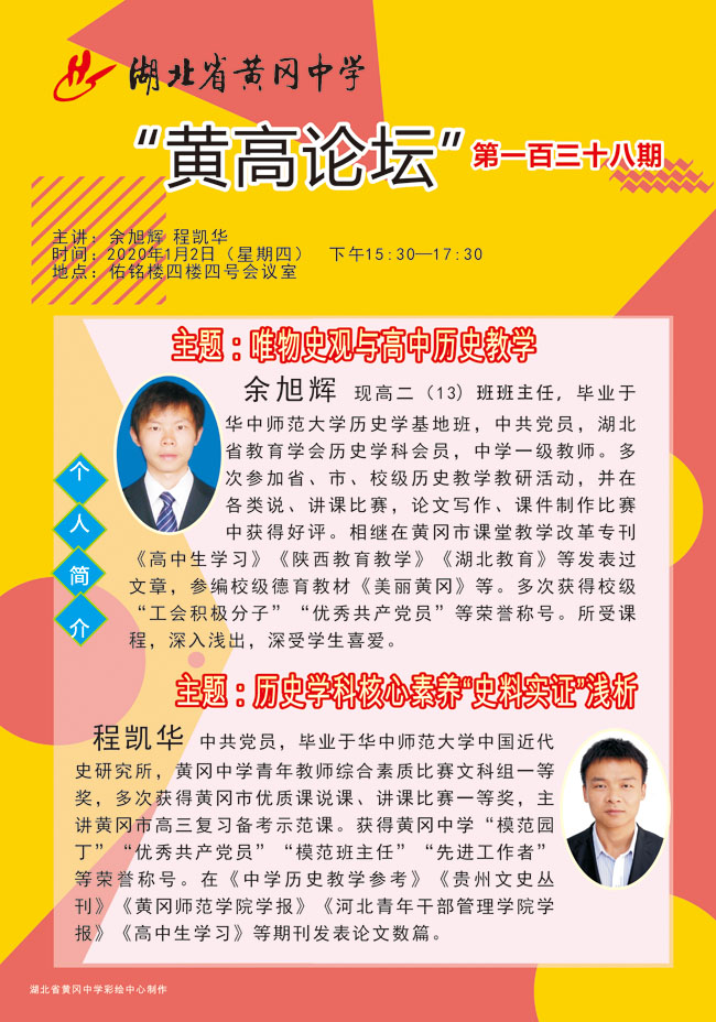 黃高論壇第138期:唯物史觀與高中歷史教學+歷史學科核心素養(yǎng)“史料實證”淺析