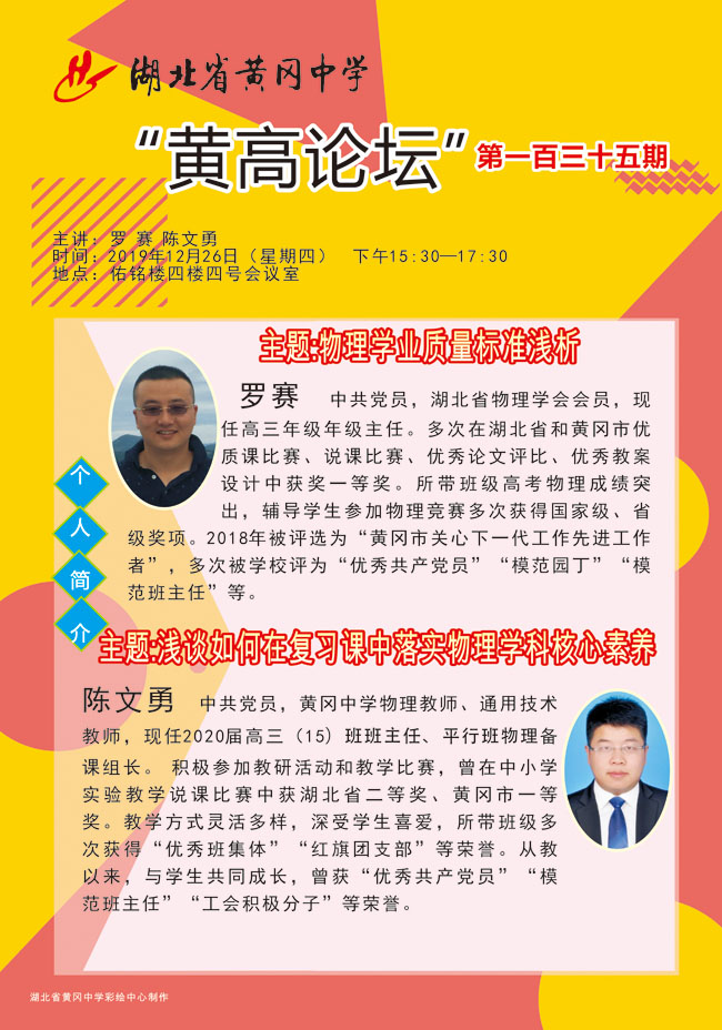 黃高論壇第135期:物理學(xué)業(yè)質(zhì)量標(biāo)準(zhǔn)淺析+淺談如何在復(fù)習(xí)課中落實(shí)物理學(xué)科核心素養(yǎng)