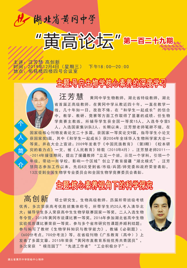 黃高論壇第129期:導(dǎo)向生物學(xué)核心素養(yǎng)的深度學(xué)習(xí)+核心素養(yǎng)視角下的科學(xué)探究