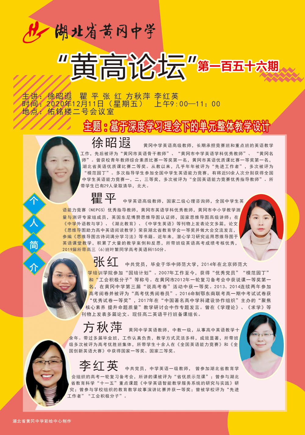 黃高論壇第156期:基于深度學(xué)習(xí)理念下的單元整體教學(xué)設(shè)計(jì)
